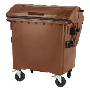Vyrobeno z plastu – Polyetylen s vysokou hustotou (HDPE). Odklopné víko je opatřeno menším víkem – víko ve víku. Standardně dodáváno se dvěma bržděnými kolečky – průměr...